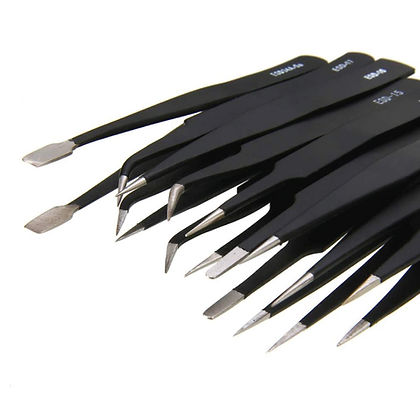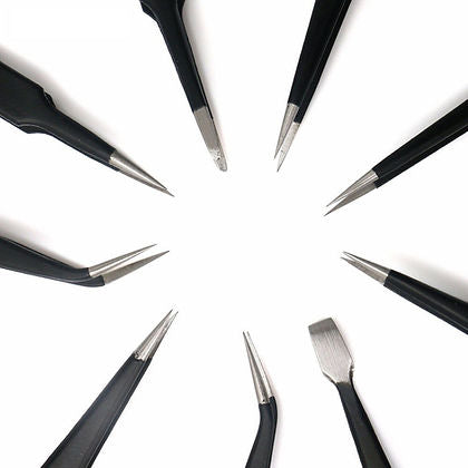 9 PIECE multi-tip, high quality precision tweezers with canvas bag.