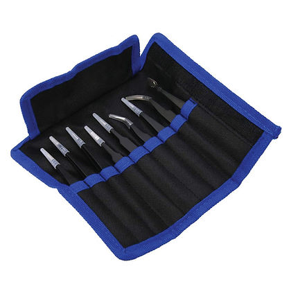 Handy canvas bag to avoid losing components and easy carrying. In addition, every tweezer is equipped with separate protective shells to prevent scratching of the human body and other items when not in use.