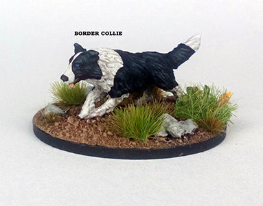 From sculptor Phil Hynes, an Irish Setter, Polish Lowland Sheepdog, Border Collie, Fox Terrier and Little Hobo (German Shepherd). All were common breeds in North America in the late 19th century.