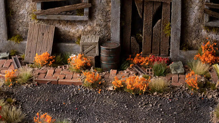 Tufts covered with orange petals. Used to simulate garden roses, lantanas, marigolds, tulips, lilies, chrysanths, geraniums, dahlias, gerberas, hibiscus. Also wild plants like calendulas or hawkweeds can be recreated. Alone or mixed with other tufts, they will bring vivid colours to your bases and dioramas.