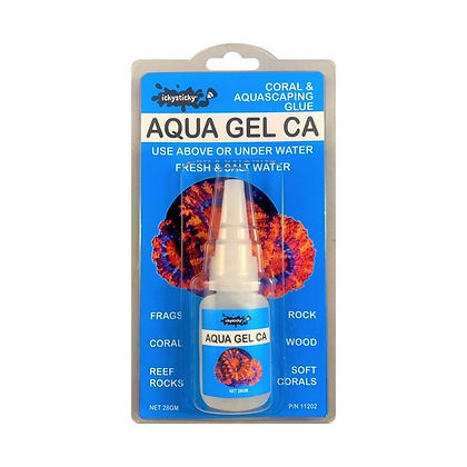 ICKYSTICKY Aqua Gel CA can be used in or out of water to easily aquascape your aquarium. Use for any aquarium, freshwater or saltwater.