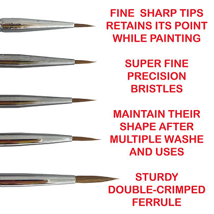 •Fine sharp tips retain its point while painting. Even after multiple washes and uses, they will continue to maintain their shape and form for many years to come.
