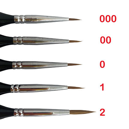 5 brush sizes: 3/0, 2/0, 0, 1, 2.