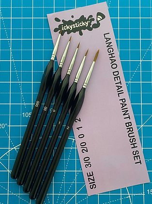 ICKYSTICKY Langhao Wolf (Weasel) Hair Detail Paint Brushes are great for the novice and experienced hobbyist. From short pointed to very finely pointed, our detail paint brushes are perfect for painting miniatures, models, figurines, action figures, army figures, and doll houses. or other tiny detailing crafts.