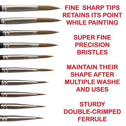 •Fine sharp tips retain its point while painting. Even after multiple washes and uses, they will continue to maintain their shape and form for many years to come.
