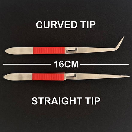 ICKYSTICKY's REVERSE ACTION TWEEZERS feature a strong cross-locking action, which holds and locks items firmly in between the tips.