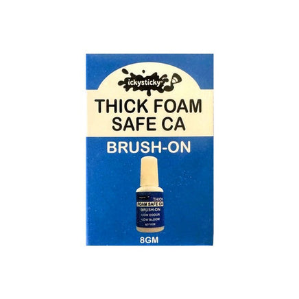 ICKYSTICKY Thick Foam Safe CA Hobby Glue is a high viscosity cyanoacrylate adhesive with low odour and low-blooming characteristics. This technology offers excellent product performance and ease of processing. Eliminates the need for ventilation and reduces frosted residues in critical cosmetic bonding.