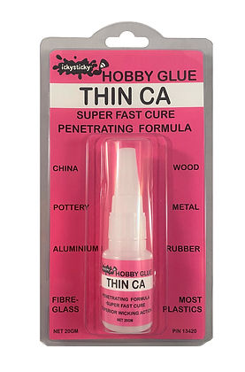 ICKYSTICKY Thin CA Hobby Glue is a thin, quick-setting, penetrating formula that bonds through oily or dirty surfaces.