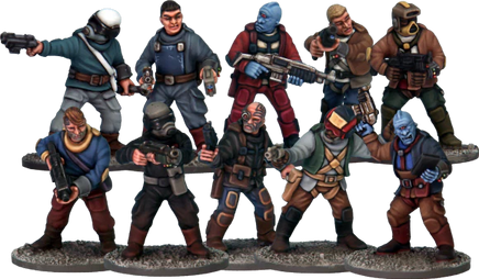This boxed set offers enough parts to build 20 lightly equipped characters for Stargrave, ideal for use in independent crews or as members of the pirate fleets hunting them down. While this kit includes a range of weaponry and a mix of alien and human heads, even more variety can be achieved by mixing in components from other Stargrave boxed sets.