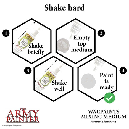 Special Effects Warpaint. Mixing Medium is a transparent resin base designed to thin or dilute your regular Warpaint without changing the flow and viscosity of the Acrylic Warpaint. Perfect when building up highlights for blending layers. Add a little at a time until you're happy with the effect.