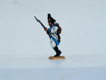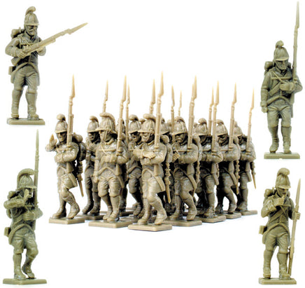 The majority of the infantry figures (32) come in march attack pose. However there are (16) figures which can be used in march attack pose or firing, loading, advancing at porte or advancing at charge plus can be made into a sergeant figure.