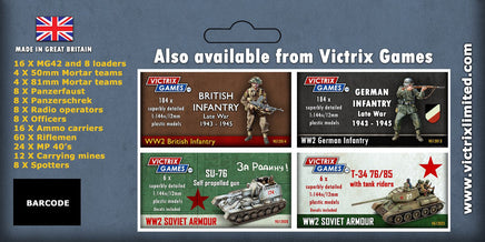 This 12mm /1:144th scale WW2 infantry set contains 196 superbly detailed miniatures. We have pushed the tooling boundaries at this scale to give you well proportioned figures with a high level of detail that surpasses many 15mm and 20mm miniatures currently on the market.