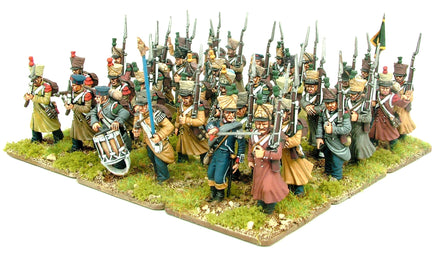 The set contains 60 figures represent Napoleon's Middle Guard, 'Fusiliers- Chasseuirs' and 'Fusiliers-Grenadiers' but can also be used for many other of Napoleon's Elite units in campaign dress.