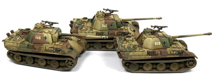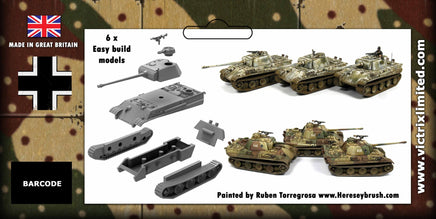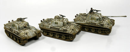This set includes 6 superbly detailed 12mm/1:144 scale tanks and a decal sheet (German crosses and red numbers). The Panther was Germany’s most successful tank design of the war and owed a lot to the Russian T34 of which it was in many essentials a copy. It featured thick and well sloped armour and mounted the very powerful 7.5cm L/70 gun. It certainly out classed anything in the British and American inventories in 1944.