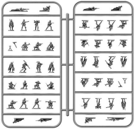 You can field a whole infantry company 1/1 ratio with each set as they contain enough riflemen, light machine guns, mortars, NCO's, radio operators, officers, sergeants and ammo carriers. They are one-piece castings as much as possible but some weapons such as Mortars and heavy Machine guns come in easy assemble multiple parts.