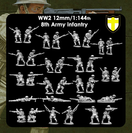 WW2 12mm/1:144th scale - British 8th Army infantry & Anti-tank Guns: