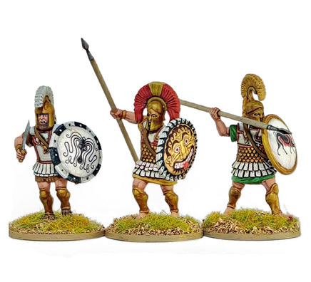 They mix perfectly well with their earlier Hoplite sets, but they have added more variety of armour and helmet styles. There is now Linothorax armour with scales and a lot more Corinthian style helmets alongside, Illyrian, Chalcidian and Phrygian variants making every Hoplite an individual.