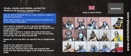 By combining this set and the Victrix Medieval Knights set you can create, Teutonic Knights, later 13th century Knights, and Fantasy Knights!