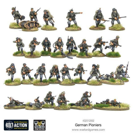 - Enough plastic and metal components to make 31 German Pioneer miniatures. Includes a host of options to allow for different weapon configurations and command models.