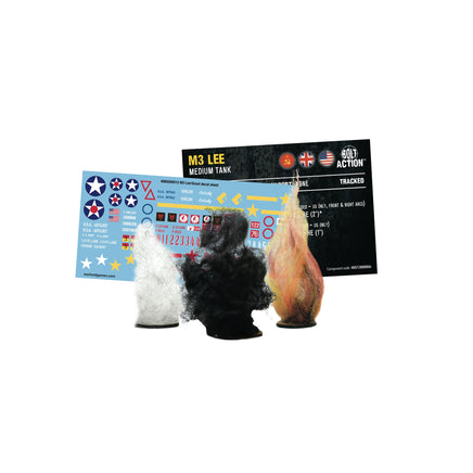Box contains one plastic M3 Lee medium tank, decal sheet,Ā Bolt ActionĀ vehicle stat card, and vehicle damage markers.