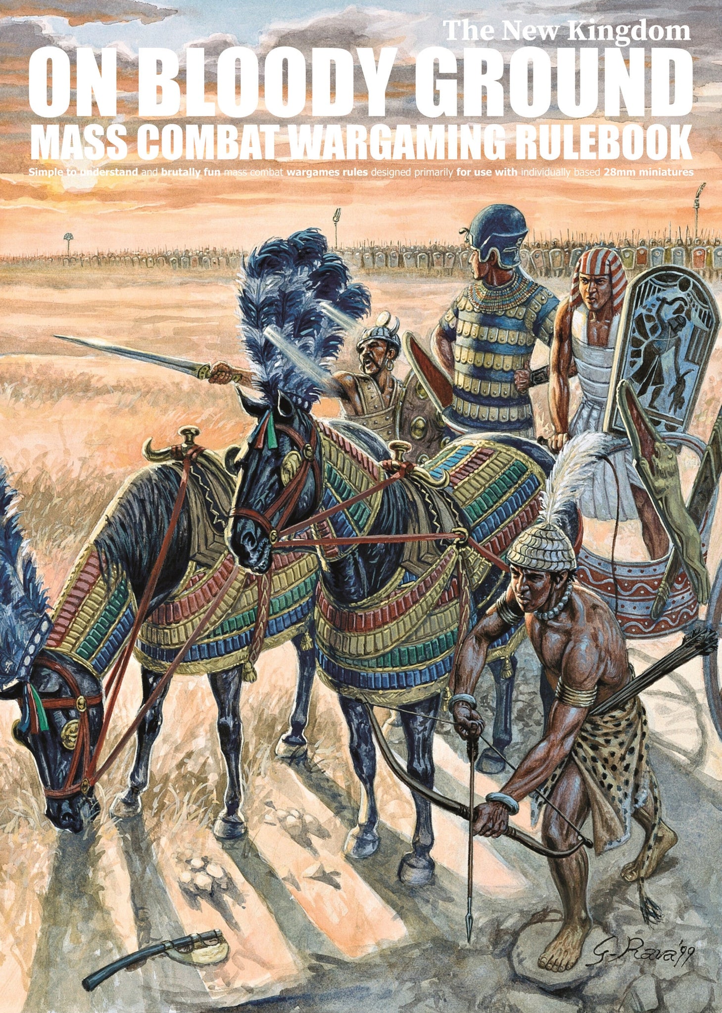 On Bloody Ground - The New Kingdom, includes seven complete army lists to enable players to build New Kingdom Egypt, The Hittites, The Sea People, The Mittani, The Nubians, The Libyans or The Israelites armies.