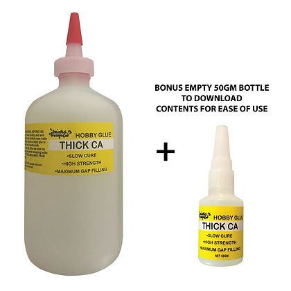 ICKYSTICKY Thick CA Hobby Glue is a high viscosity, maximum gap filling formula. This is a very slow curing formula.