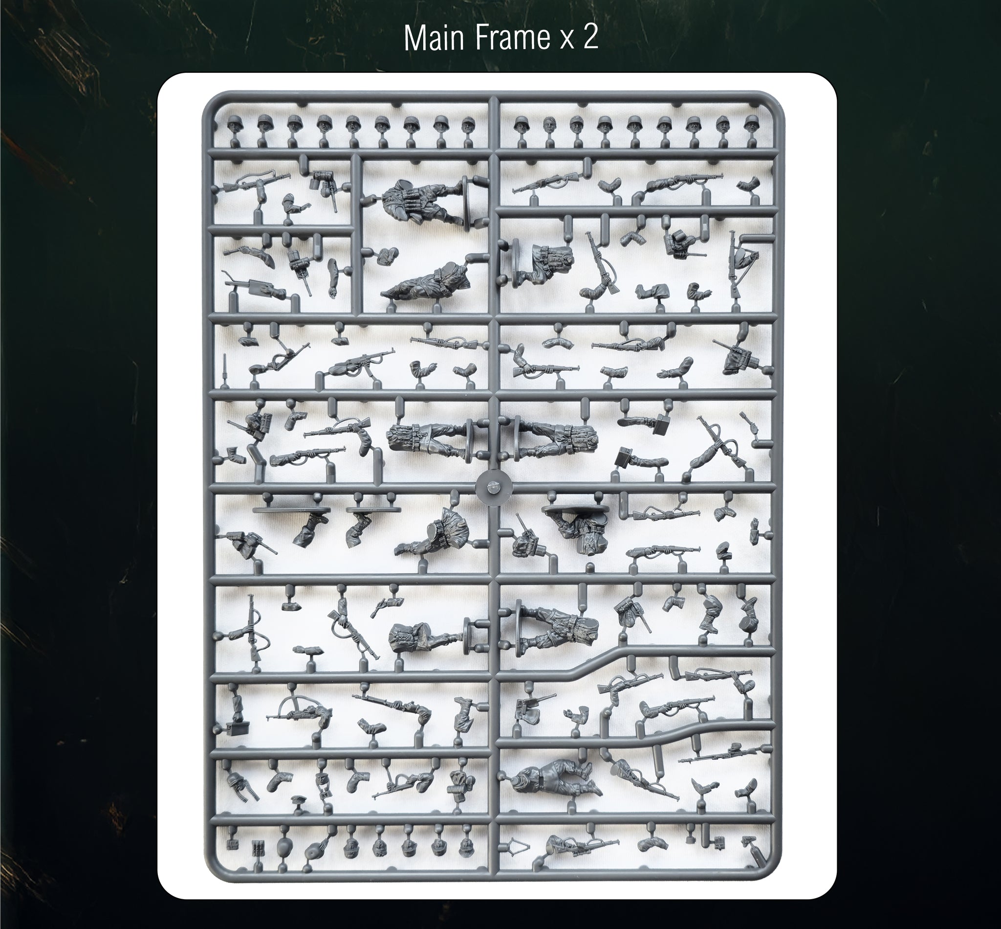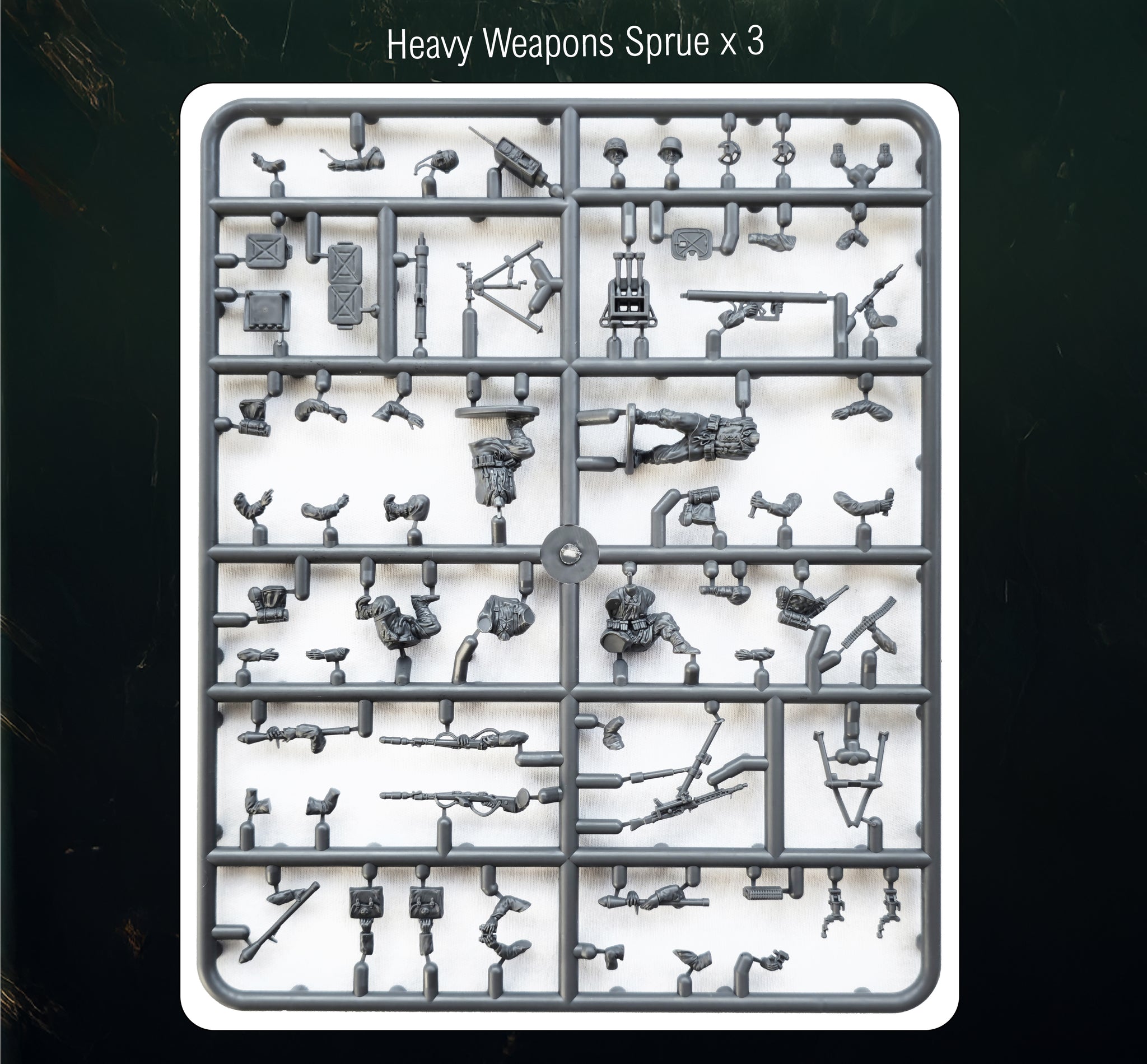 Every figure in your platoon can be made differently as we have provided a lot of arm and head options for you to choose from. There are plenty of MG42’s and a good selection of MP40’s and StG 44’s. Separate stick grenades and hands holding stick grenades are included so any figure can be converted with these items.